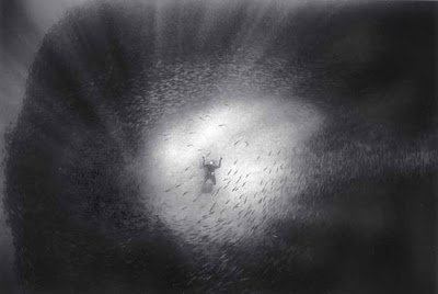 While pressing some prints today, I found a current copy of Lenswork Magazine. (In case you didn’t know, Lenswork is no longer sold on newsstands, as an effort to save trees. Their feeling is that keeping it a subscription based magazine will let them print amounts that won’t be disposed of after the month is over.) I hadn’t perused an issue in awhile and I found a thrilling series by Wayne Levin. There is a lot of interesting work on his site, but be sure to look at “Fish Schools”.