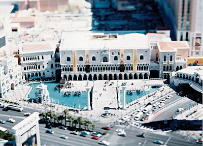 “Hovering in a helicopter some 300 to 500 feet above major cities, shooting them with a large-format camera that lets him focus on the structures of his choice, the Italian photographer Olivo Barbieri plays tricks with scale and focus to achieve a sense of eerie irreality. “