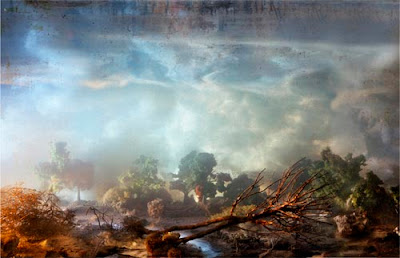 I discovered Kim Keever’s work when making my list for museum/gallery visits for my trip to NYC at the end of this week (any suggestions are welcome). On first glance Mr. Keever’s images looked more like paintings than photographs, but then I noticed that the landscapes were underwater and I was intrigued. Kim’s work is on exhibition through 12/31 at Kinz, Tillou, and Feigen Gallery in New York City. Check out his set up in the first image.