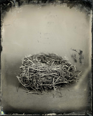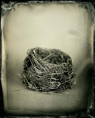 Susan Seubert had a fantastic show at the Froelick Gallery featuring a grid of unique ambrotypes of nests (that are also available as large lambada prints). This was an example where the subject matter so perfectly fit the photographic technique. Also exhibited were a number of different series, including Bomb in a Box (digital pigment print on tissue paper, encaustic wax, and lead) and Dress (tintypes). Susan divides her time between her commercial and fine art work. Her fine art web site is full of thought provoking work, presented in a way to engage and enchant the viewer.