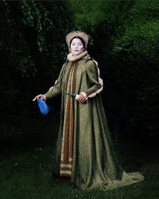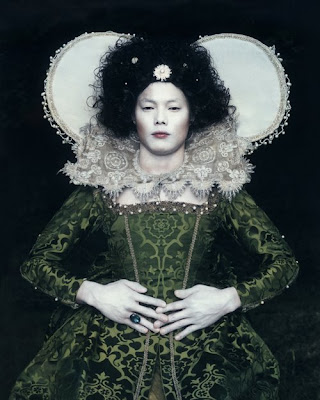 “In the series, Existing in Costume, Chan-Hyo Bae has chosen the iconography of queenliness to express his feelings as an Asian immigrant. He dresses in period costumes and photographs himself as unidentified members of English aristocracy from the 13th to 19th centuries (all the works are untitled). His self-portraits mimic women monarchs only and are an examination of gender, power, race, and class. Living and working in London since 2004, Bae’s large format color prints reflect feelings of cultural estrangement and reveal a fantasized character that would be accepted and honored.”