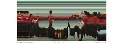Since 2005, Jay has been working on a project that combines his amazing resume of interests. “Johnson produces photographic images that challenge the norms of perception. Employing a process that is distinct from conventional photography, he creates works that merge the recording of space and time into a single, linear “spacetime” continuum. The resulting photographs are akin to both seismographs and electrocardiograms in that, as timelines, they begin on the left and end on the right. The horizontal length of the image conveys an uninterrupted and fluid measurement of a brief span of time, varying in duration from 10 seconds up to 45 minutes.”