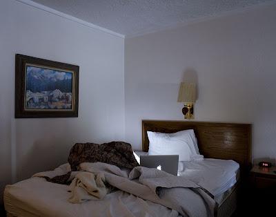 One of my favorite projects is, Road Trip, with images that capture the essence of time on the road. From the first image, where fellow travelers (still in their jackets) study the map over beers, in a cheap motel room with a gap in the door and curtain off it’s track. It’s all in the details and he knows how to find them.