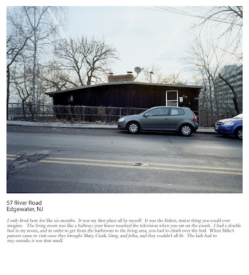 Communities are part of our everyday lives, in some way or another we are involved in multiple communities that all function differently. For the last few years I have been exploring how community functions in neighborhoods. One way of examining this is through an individual’s housing from a social as well as geographical point of view. Taking two individuals, Mike and Colleen, and photographing their structural history, I am interested in how people often make assumptions about an individual based on location of their home. Starting with the homes that they occupied as children, and continuing through to the architectural structure they currently live in, every property has been documented in its current state. By tracing their geographic history, I am investigating how their identity has been shaped through their relationship with the dwelling and the surrounding community. In presenting these images along with personal text from Mike and Colleen, it examines both the public and private elements of an individual within a community. Impressions and judgments often change once familiarity is established, by telling personal stories about the structure, events that took place, and people related to the property, the viewer becomes acquainted with the individual and can follow them throughout their life. This allows an idea of who these people are to be formed. Following two particular people, it interesting to see what influenced them in their lives and lead them to their current home. An important question that this raises is how do people arrive in the present and what values, attitudes, and mindsets follow them throughout their lives?