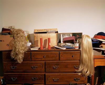 I live in LA and I like it here. I like that the palm trees were all planted at the same time. I like that Gloria Swanson played herself in Sunset Boulevard. I like that she had it, and then she lost it, and she didn’t know the difference. I like that she buried her dead chimp in a satin lined casket. Making pictures in LA is good. It’s like sifting through an old trunk filled with worn out fan letters and a bright blonde lock of hair from 1953. I am fascinated with the performance that exists and is played out in the ceremonies and rituals practiced every day. In 2009, I have been making pictures of people posing as glamorous movie stars. The series, The Once and Future Queens, includes pictures of individuals who answered an internet advertisement soliciting older woman to pose as glamorous movie stars. The pictures are collaborations: Each participant is asked to provide her own makeup, hair and wardrobe and to select a desired location for the shoot. The project came from my fascination with glamour, a remnant of Old Hollywood.