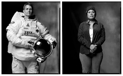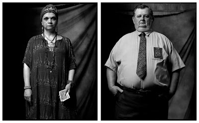 The diptychs took Laita eight years and include subjects from each of the 48 contiguous states. All of the black and white images were made using a traveling “studio” with an 8×10 camera, a single light and a grey backdrop, which help maintain neutrality and consistency in the paired images.