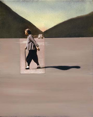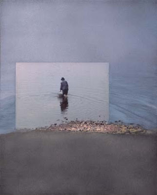 Holly Roberts has been best know for combining painting on top of photography: her new work reverses the technique and places cut-out photography on top of paintings. Holly Roberts combines her passion for painting and photography to create her amusing and sometimes dark imagery. Roberts grew up and still resides in New Mexico, a region surrounded by desert. Known for its Native American heritage, New Mexico is a place where indigenous ideology and Western beliefs merge, creating a magical area filled with a sense of history and spirituality — elements essential to Roberts and her work.