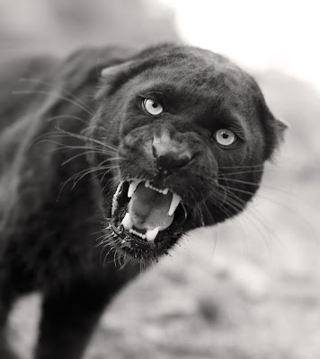 And this is her story about the image below: While the black leopard was a somewhat trained (use that word loosely) leopard, this image demonstrates the fine line. To me this is a reminder of how my posture, breathing, hair must relay my respect and animal instinct clearly as my eyes are behind the camera. The weak get eaten and rightfully so in the animal kingdom, I accept this and embrace it. He was in the open, with all claws and no trainer anywhere near me, his food was accidently thrown very close to me, this was not a long lens. I knew immediately this could end badly should I have made the slightest deviation in breath or body language.
