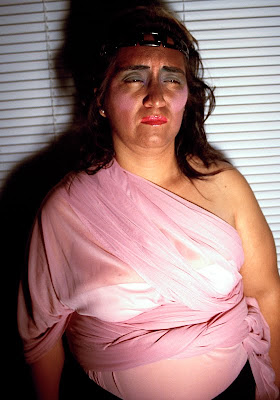 This project began as an exploration of a large woman being unable to be loved. A lot of my early pictures were not respectful, rather they were meant to taunt, even humiliate my subject. There was a turning point in the production of this series when the work was not omniscient but rather extroverted costuming of my character. The clothes and styling began to change into something more realistic yet extraordinary, even star like. If anything my images are not necessarily placing blame on social constructs and culture, they are self-deprecation at its best.