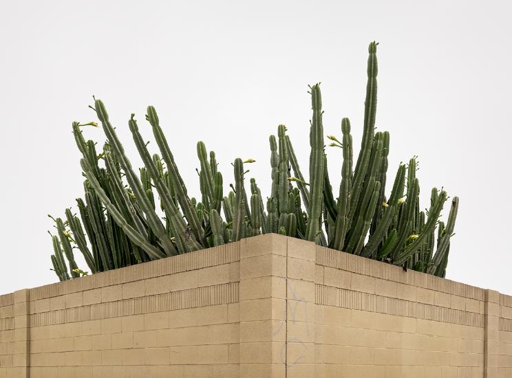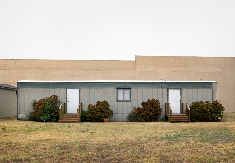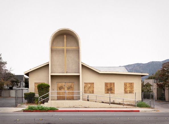 I grew up in North Orange County and attended school in inland Riverside County. After 25 years I returned, and was fascinated by the simultaneous decline and growth. My familiarity with these places makes me see them differently. I’ve avoided traditional, documentary-style photography; instead I have photographed select buildings and shrubbery in primarily static, symmetrical compositions, reflecting change, irony and evolution.