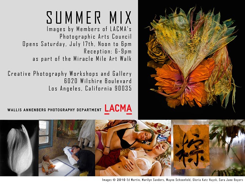 This summer I was honored to co-curate (along with Sheila Arens, Sara Jane Boyers, and Svjetlana Tepavcevic) a terrific exhibition that is opening this Saturday. LACMA’s Photographic Arts Council and the Wallis Annenberg Photography Department present SUMMER MIX: Images by Members of LACMA’s Photographic Arts Council, a new exhibition of photographs at the Creative Photography Workshops/Gallery, 6020 Wilshire Boulevard, Los Angeles, CA 90036.