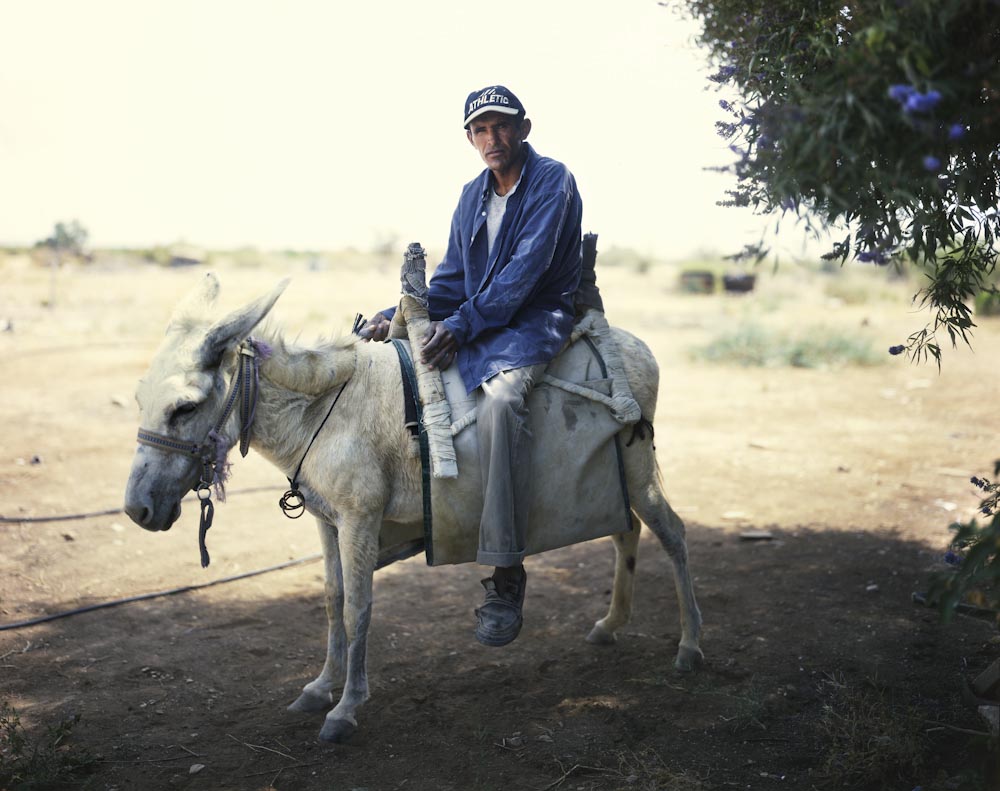 As per the Orthodox Jewish tradition the Messiah (the Prophet) will arrive riding on a white donkey. A few years ago, as I was photographing near the Dead Sea a Palestinian man rode past me on his white donkey and I took a picture of him. It was after having developed this plate that I’ve realized that I had encountered my “Messiah”; it was this chance encounter which brought me to initiate the body of work that carries the name: “The quest for the man on the white donkey”.