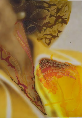 Nancy shows a faceless, former first lady in an elegant red dress; the figure is cropped to an anonymous bust. Projected thoughts/texts are written/drawn on the surface of the garment. Details from Reagan’s life such as the attempted assassination of her husband to their personal relationship are literally inscribed on the subject’s body. Yury, playing out the role of the first lady, uses a confessional voice, exploring the tensions created by the incommensurability of the personal with living in the public eye, particularly as the feminine.