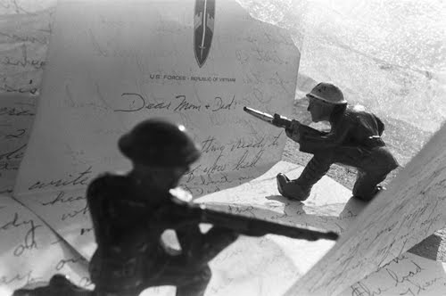 Thirty five years after the war, Jessica retraces his experiences and the experiences of many of his fellow soldiers, through letters, drawings, interviews, and trips to Viet Nam and locations in the U.S., in order to understand his thoughts and journey. She combines contemporary images with letters, old photographs, and objects of memory resulting in layered visual puzzle pieces that are poignant and meaningful. It is a project that creates a universal sadness, bringing attention to the effects of war, the loss of a loved one, and lives cut short.