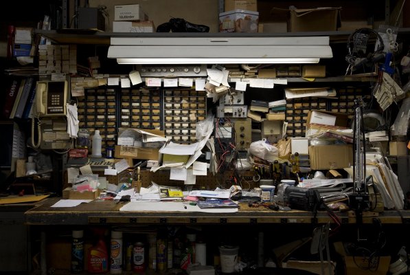 The Workspace project is my ongoing attempt to examine the quasi-private spaces people carve out of their public work lives. Such spaces represent a tug of war between personal expression and comfort on the one hand and the unyielding demands of work on the other. The long-term accumulation of the tokens of that struggle, over years or even decades, can be formally beautiful in a very human and touching way. The project is part of a larger series in which I ask friends and strangers to open up private spaces to my camera.