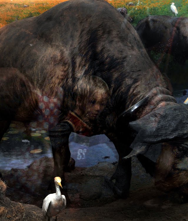 In 2008, during a long anticipated visit to the American Museum of Natural History in New York, I accidentally created an intriguing image while “snapshotting” their dioramas. A reflection of my husband, inadvertently rendered in the glass and framed behind a large ostrich, gave me pause. A few months later, I began to frequent diorama exhibits around the country to furtively capture these narratives. It is both exhilarating and humbling to be the creative catalyst for these truly alchemical images which are set against a century old stage and born of random timing and fractured light.