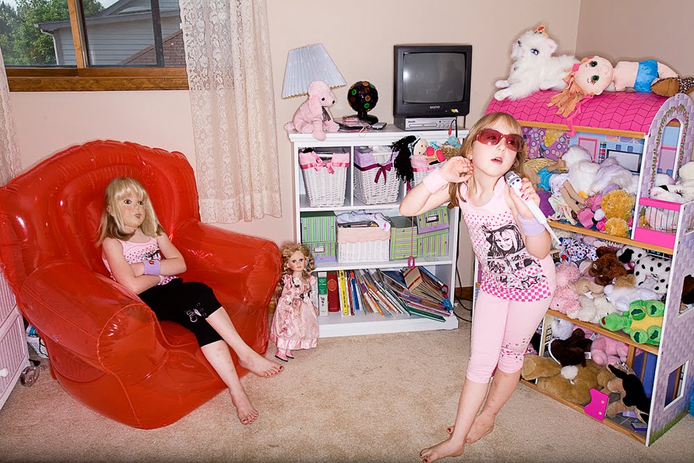 Through the mother and daughter relationship, friendships are created to reveal another facet of the imagined life, isolation and vulnerability. With the innocence of childhood, certain environmental and familial messages seep into the psyche and start to form behaviors, aesthetics, and ambitions. My goal is to offer an intertwining story of an imagined family living in a powerful world of media, technology and imagery and how cultural perspectives and realities are formed.