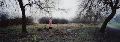 Canadian photographer, Karen Bubas images take their inspiration from the films of Alfred Hitchcock and Michelangelo Antonioni. Using the language of Hitchcock’s cinematography and Antonioni’s depiction of women (seemingly lost in expansive settings), Bubas plays the role of director with her friends and has created a series of images reminiscent of film and painting. Dressed in carefully selected costumes and positioned in pre-planned locations in the Vancouver area, the pictures depict stylish and chic women in parks with their faces turned away. Some pictures have the subjects situated with their backs to the camera, some have a profile view with their heads turned so we cannot see their faces. The voyeuristic placement of the camera creates a crucial tension between the women, their attire, the spaces they inhabit, and what they are looking at.