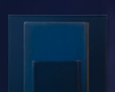 The colored planes of the books are seeped with damp blues some nearly black, like color field paintings that revel in the sensation of color. The texture of the book cloth reads like canvas stained with paint. I love the way color in a Reinhardt or Rothko painting seems to hover around the canvas. I play with camera focus to achieve a hovering effect and to evoke a sense of space up around your skin but fathomless like a lake at night.