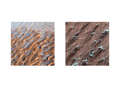 Left: Windblown sand, near Yachats, OR; Right: South Pole Cryptic Terrian, Mars (image from Mars Reconnaissance Orbiter)