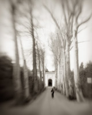 I make these images in my own wanderings, in my own odd, anachronistic, and impractical way. I photograph without electronics using large and medium format camera bodies outfitted with homemade lenses that I’ve cobbled together from vintage optical components. The images, along with the blur, diffusion and other effects, are captured in camera on film. I then make platinum–palladium prints onto handmade Japanese paper. This 19th century method is among the most permanent and costly photographic processes, yet yields a delicate translucent print with a unique ephemeral, dreamy quality that complements the images.