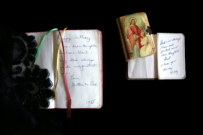 After my mother died, my sister gave me this photograph of her that I had never seen before. Perhaps it’s her high school graduation portrait. I added the card from the funeral mass I had said for her because I thought her soul need the prayers. And so did I.