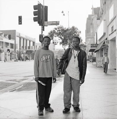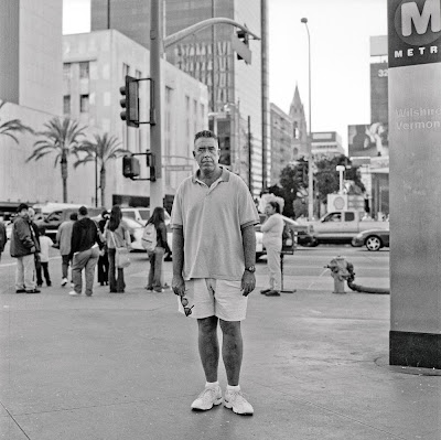 I had no preparatory questions and set no requirements, except that they were on Wilshire Boulevard and willing to pose for roughly six exposures. I asked people to look at the camera, but gave no other directions. Their poses remain their own, personal statements of those individuals in those particular times at those specific places.
