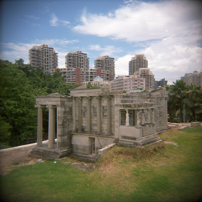 Monumental China: These images were taken in China both at World Park, located in the southwestern district of Beijing, and Window of the World in Shenzhen, which is just across the border from Hong Kong. World Park was built in 1993 and Window of the World in 1994. They are both essentially an architectural amusement park featuring scale model versions of some of the world’s iconic buildings or landmarks. I found these parks fascinating on many levels. The absurd mash-up of nations, cultures, and monuments in seeing Big Ben placed yards away from the Arc d’ Triumph amongst Chinese high-rise condos standing in the background or, the placing of the US Capitol at the foot of Mount Rushmore which are thousands of miles apart. Other oddities arise in the translation of some of the monumental names; in particular The Grand Canyon of Colorado. As a native of Arizona, I found this translation humorous as well as oddly logical as the Colorado River is what runs through the Grand Canyon in Arizona. In addition, buildings like Angkor Wat, which is actually 65m (roughly 213 feet) at its tallest point, being constructed to be as tall as I am struck me as overtly humorous