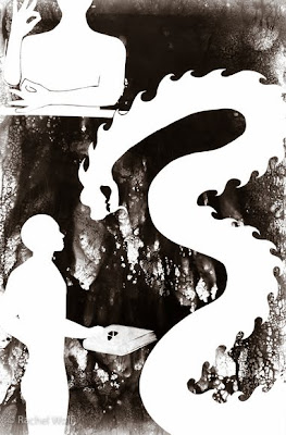 Rachel Wolf hails from Anchorage AK, earned her B.A. in Photography Hampshire College in Amherst, MA, and now lives in Portland, OR. She has worked with a number of influential artists including Harriet Casdin Silver, a pioneer of holographic art, and Annie Leibovitz. Her unique life history allows for a unique approach to her image making. The work I am featuring is from the project, The 99th Fable, “a larger than life photograpm novella”. I thought it would be important to show process images which certainly enrich the end result. Visit her website to see more, and to see the array of approaches to creating photographic images.