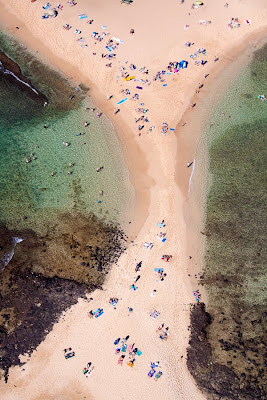 From above, a simple beach or pool becomes a blank canvas that allows me to start seeing the world as art. People and objects become patterns creating repetition, shape and form. Each geographic location has revealed that the love of water is a universal experience, an activity that offers people a sense of freedom and joy. Seeing the world from the seat of a helicopter makes me appreciate the beauty of our planet.
