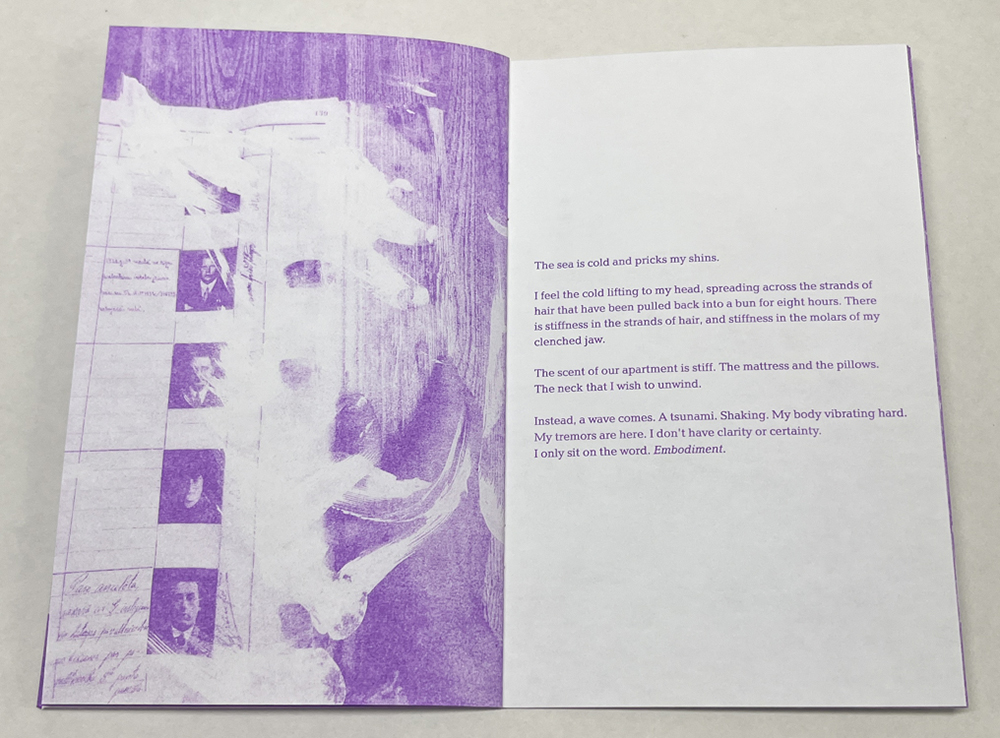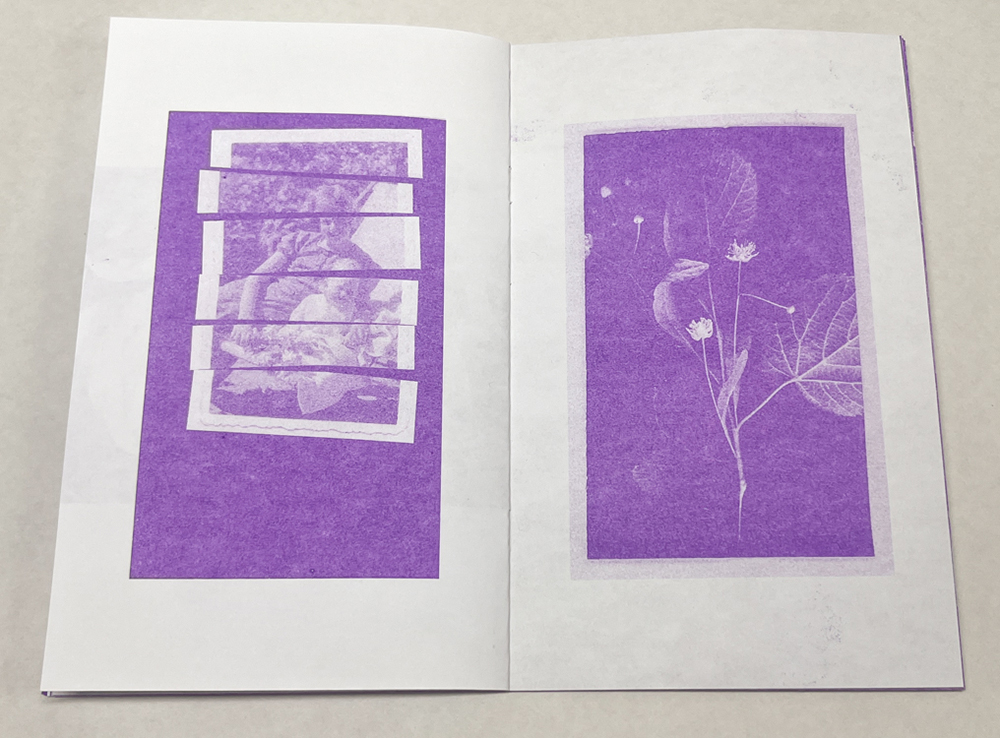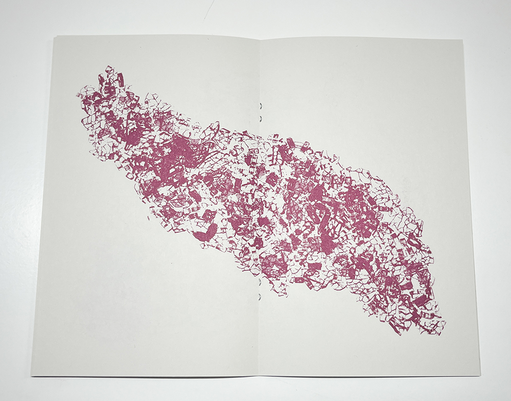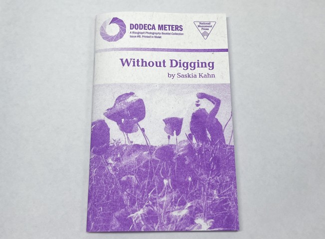 Without Digging is 32 pages, risograph printed in Violet on Domtar & French paper with an SF9450. 5×8″. Edition of 200 +25. Published in July of 2024.