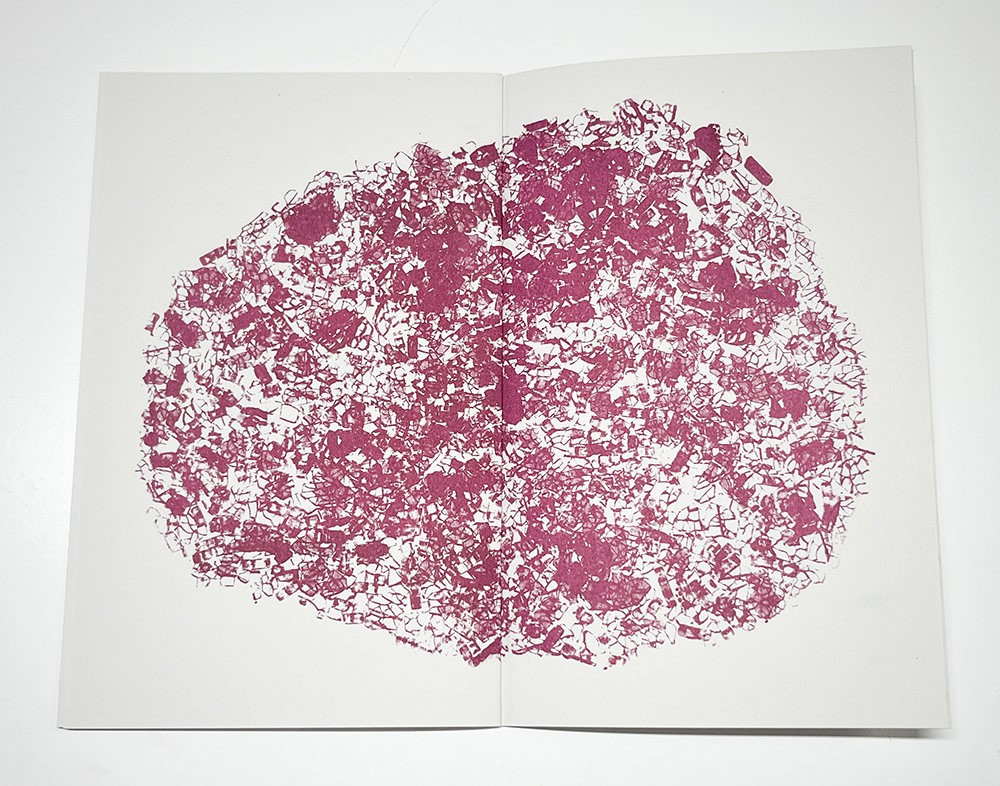 Bip is 36 pages, risograph printed in Maroon on Mohawk Via Light Gray paper with an RZ310. 5×8″. Edition of 200 +25. Published in August of 2024.