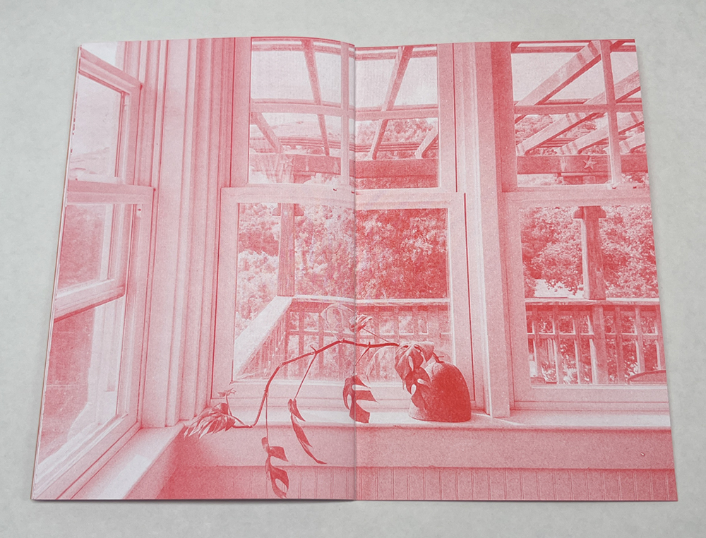 Dream House is 36 pages, risograph printed in Scarlet on Domtar & French paper with an SF9450. 5×8″. Edition of 200 +25. Published in July of 2024.