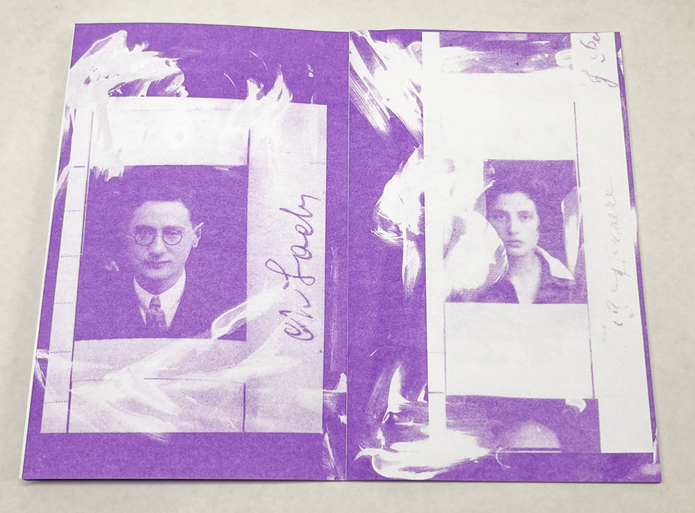 ZC: I had mentioned on the first day I previously knew most artists in the collection, but Saskia is the exception to that. Tamara suggested I invite Saskia to be part of the series, thinking our mutual connection to Eastern Europe would help us to get along, and tamara was right. Without Digging is my favorite type of book to work on an artist with: the main job at hand is to figure out how to present a collection of work centered around an extremely heavy topic, like ethnic cleansing, in a way that is inviting and approachable. What I love so much about this book, and I think the color choice, violet, really is what drives that quality home, that