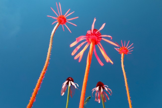 Continuing our look at past Lenscratch’s exhibitions, the 34 photographers presented in A Second Gaze: The Favorite Color Edition, capture life on its full, kaleidoscopic spectrum. The sequence begins with Harvey Hanig’s image of clouds dissipating behind telephone wires, revealing glimpses of blue sky. This burst of color within the white expanse sets the stage for a vibrant journey through varied hues and saturations. The curation then transitions smoothly between hues, culminating with a sequence of images where color becomes less natural and more psychedelic and fantastical. Together, these photographs celebrate the beauty of color in everyday life, captured through vibrant landscapes, still life, portraiture and abstract photographs.