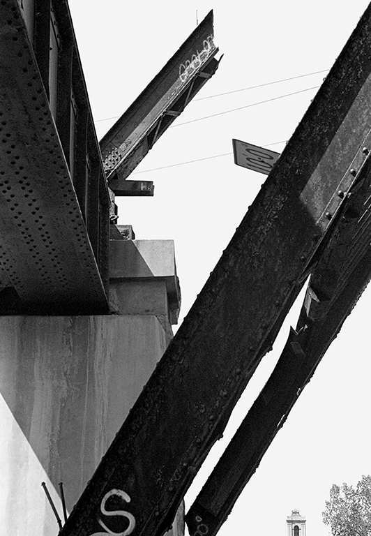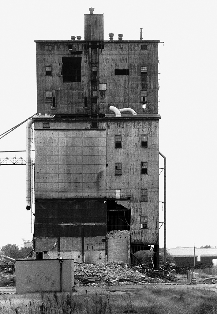 As a single mother, I could no longer afford to make films, so I began to work in B/W photography using a camera my father gave me when he upgraded his for volunteer work as a photographer for the St. Paul Fire Department. I used the darkroom at a community center in my Minneapolis neighborhood but eventually my father and I set up a darkroom in my home that we both used. One day in 1982, he suggested I photograph the abandoned railroad workshops where my grandfather worked as a carpenter building boxcars in the 1930’s, before they were renovated for retail and office space. This was the first time I photographed an industrial site. It was the beginning of the Rust Belt era with the economy changing due to neoliberalism and globalization. I was working with experimental abstract imagery and had no intention of making this my primary work.