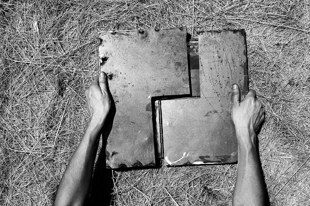 Also, this description: Dignidad is a political abstraction, which refers to the history of Colonia Dignidad, a nazi enclave that operated in southern Chile during the dictatorship, through the construction and deconstruction of symbols of power. The spaces of segregation and repression can be imagined spatially and conceptually through the architecture of the bunkers of the Colonia Dignidad period. The physical transformation of the sculpture manifests as the history’s relevance and resonance of the ideologies evoked by symbols and spaces. Dignidad is composed of a small size metal movable book, four large size metal books, a lithograph artist book, and a performance.