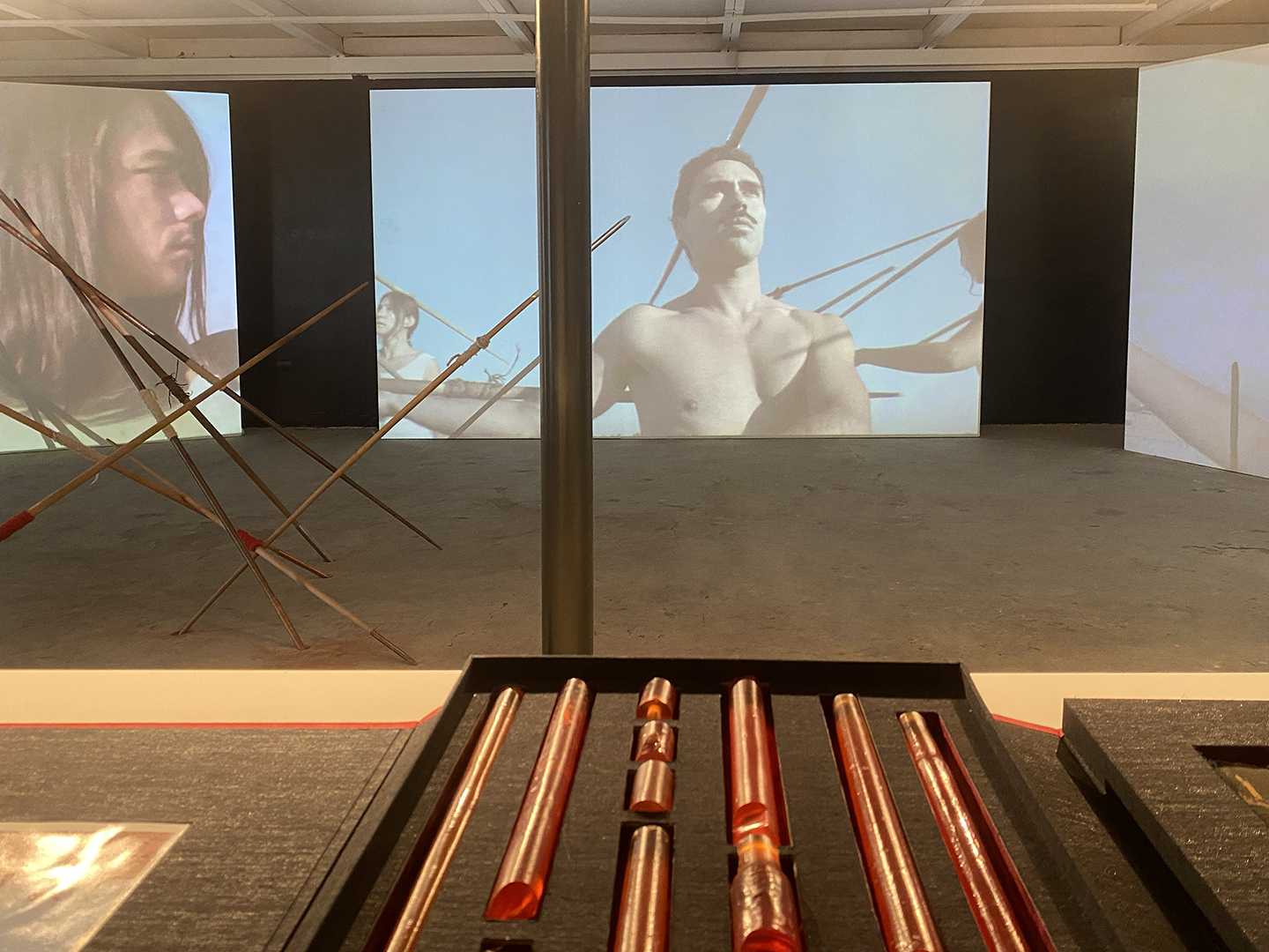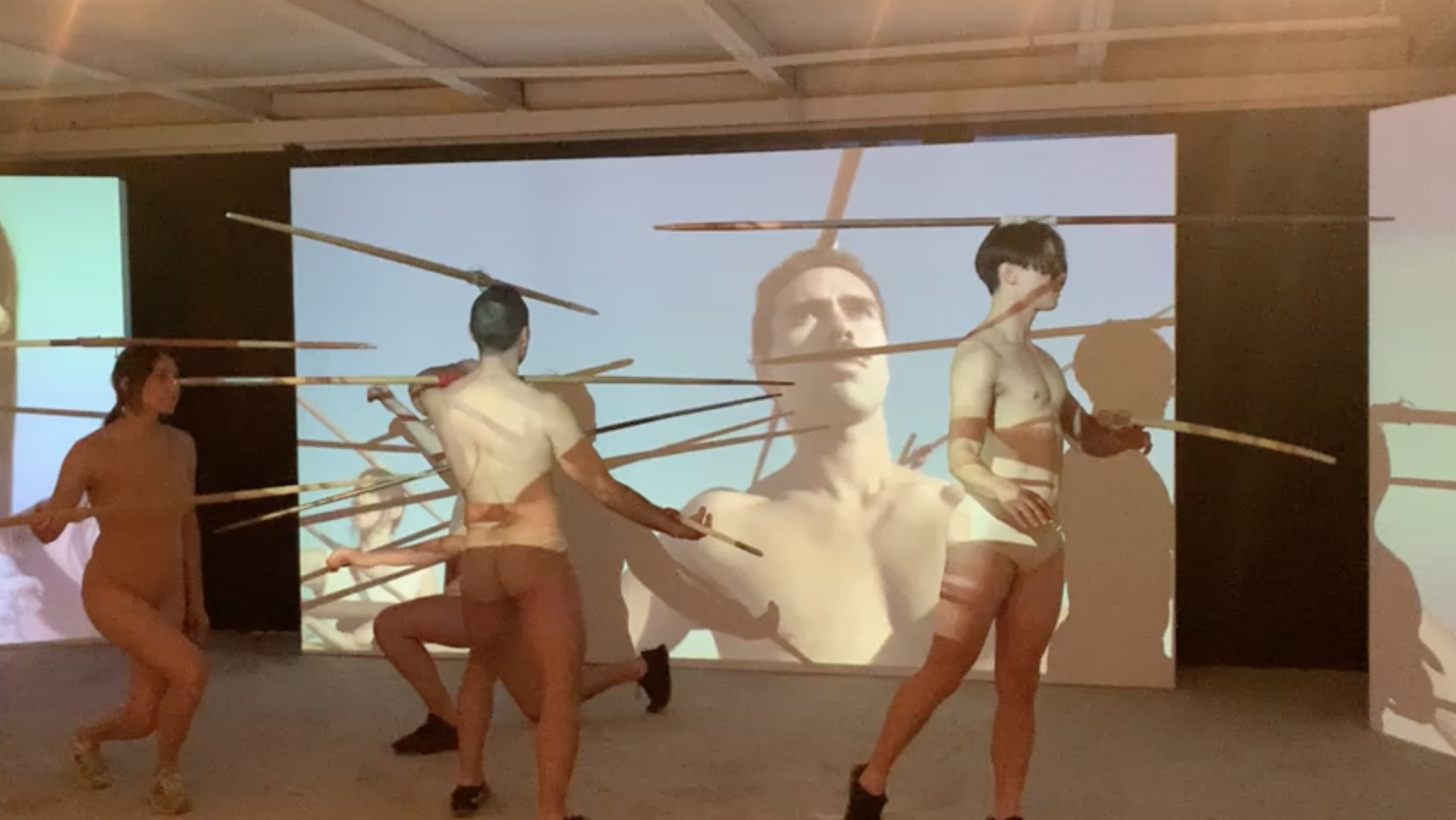 through abstract etchings on textile and video stills. The Javelin Project is a ritual-performance of 30 minutes with original music that explores the concept of migration, resistance, and freedom through the history of the ancestral spear to the professional javelin. Inspired by sports, and more specifically on the javelin throw, the project seeks to reflect on issues of power and patriarchy through a choreography based on simple movements from the early aboriginal cultures to the capitalism system we inhabited.