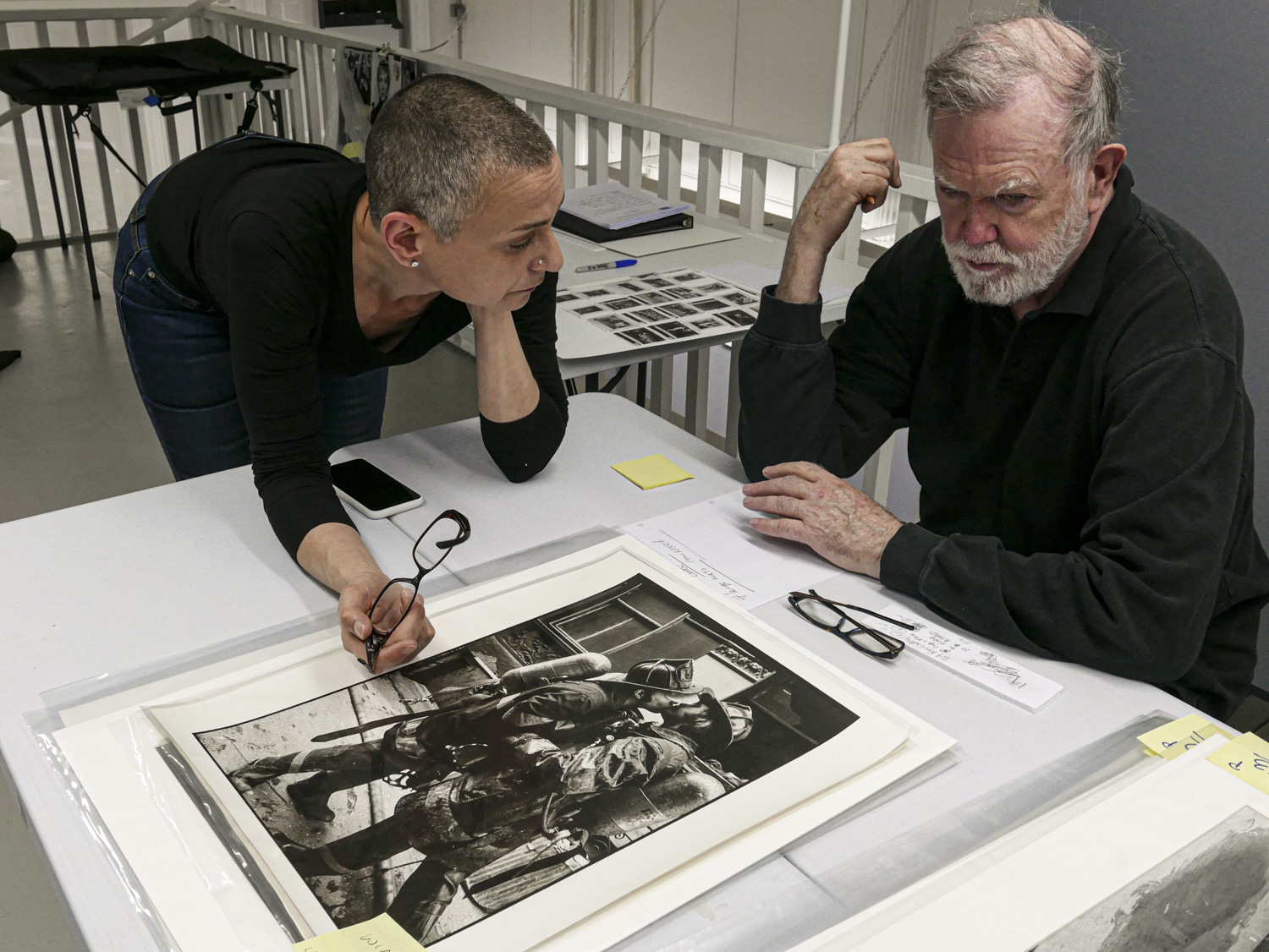 Curator Julie Grahame and Gallery President Thom O’Connor select images for the Jill Freedman Memorial Exhibition, scheduled for March 2020 – the last show before the pandemic shut down the Gallery
