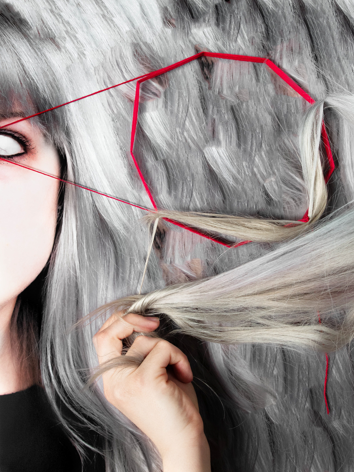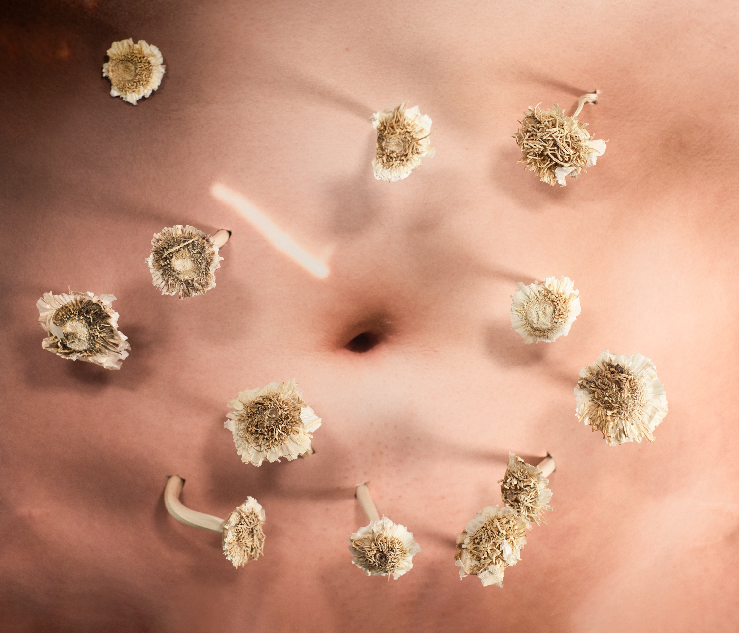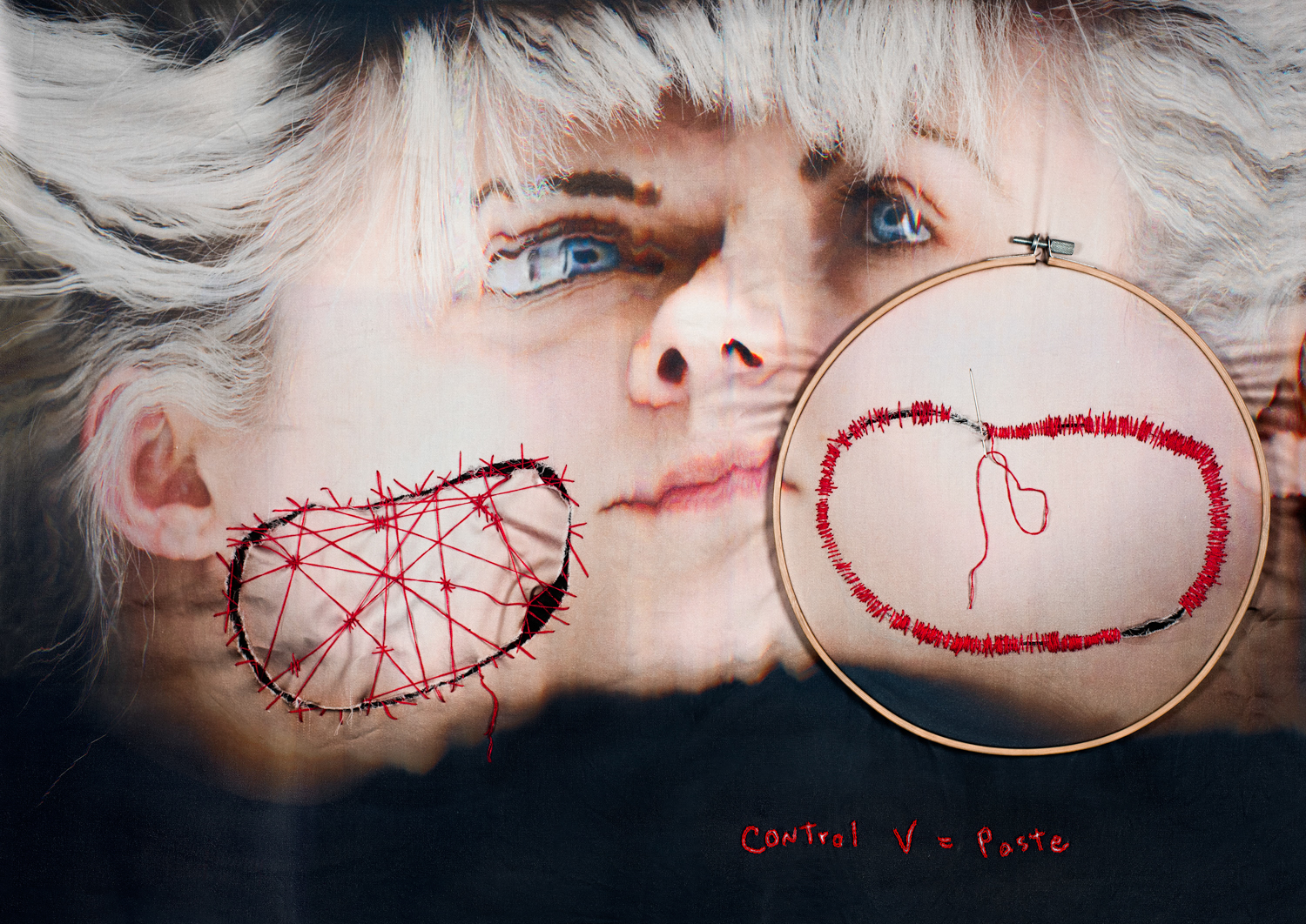 As the glitch has become more physical, I’ve also tried to use it as a method for digging into my deep-seated body horror fears of trypophobia (the irrational aversion to small clusters of holes or bumps, but especially in the body). If I lean into these fears by using images of my body in my art, I hope to desensitize myself to them. I’ve had to consider what forms of layering and puncturing – whether physical or digital, corporeal or psychological – can create feelings of both self-abjection and self-healing: a delicate and challenging balance! This takes shape through the meticulous construction of images where I play in the spaces between physical and digital, corporeal and psychological – creating images that then get manipulated and re-manipulated until the thresholds between real and surreal start to dissolve. That dissolution is also kind of like a peeling back – like I’m trying to peel back the top layer of reality in order to reveal another world beneath… a world of generational trauma and anxieties, unprocessed grief, chronic pain, and concerned questions about the past and future of my lineage – especially now, with a little human that literally came out of me and existing in the world.
