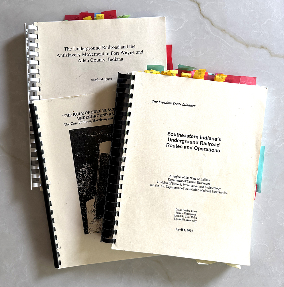 I began the research process in the early 2000s, just as the United States Congress Freedom Trails initiative started releasing research and prior to the opening of the National Underground Railroad Freedom Center in Cincinnati, Ohio. At the time, I was able to identify a few sites, but mapping out a complete route proved to be a daunting challenge. My work on the project was often sporadic—I’d dig in, hit a dead end, grow frustrated, and set it aside. Yet the idea kept resurfacing in my daily pages, pulling me back in and restarting the cycle all over again.