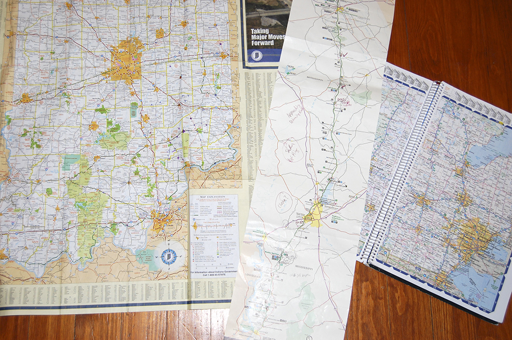 © Jeanine Michna-Bales, marked-up maps showing possible locations to photograph for the project “Through Darkness to Light: Photographs Along the Underground Railroad” 2002 – 2016
