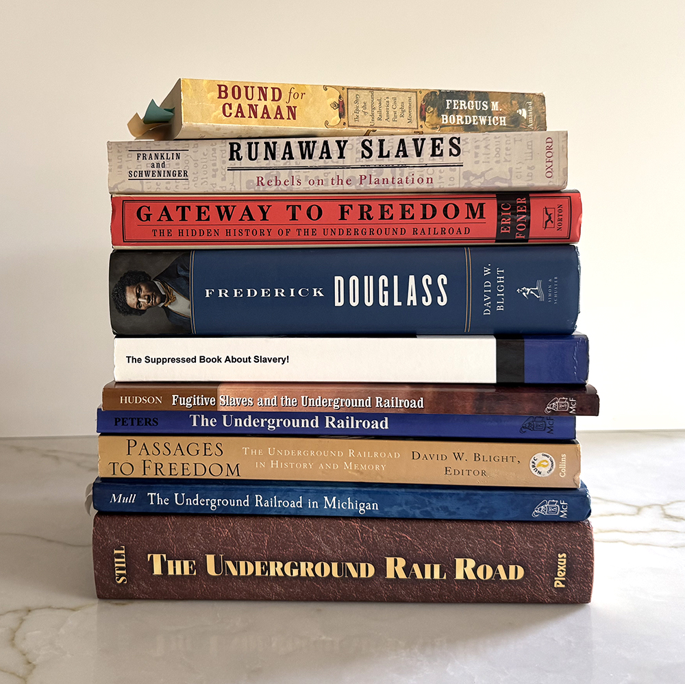 I began reading extensively—starting with contemporary works like Bound for Canaan by Fergus M. Bordewich and period texts such as William H. Siebert’s The Underground Railroad. Over the 14 years, I built a substantial library on the subject. My goal was to understand the history of slavery in the United States and how its legacy continues to shape our society. Its shadow still lingers in many forms: the modern prison industrial complex, racial profiling by police, redlining and real estate zoning, disparities in generational wealth, gerrymandering—and the list continues.