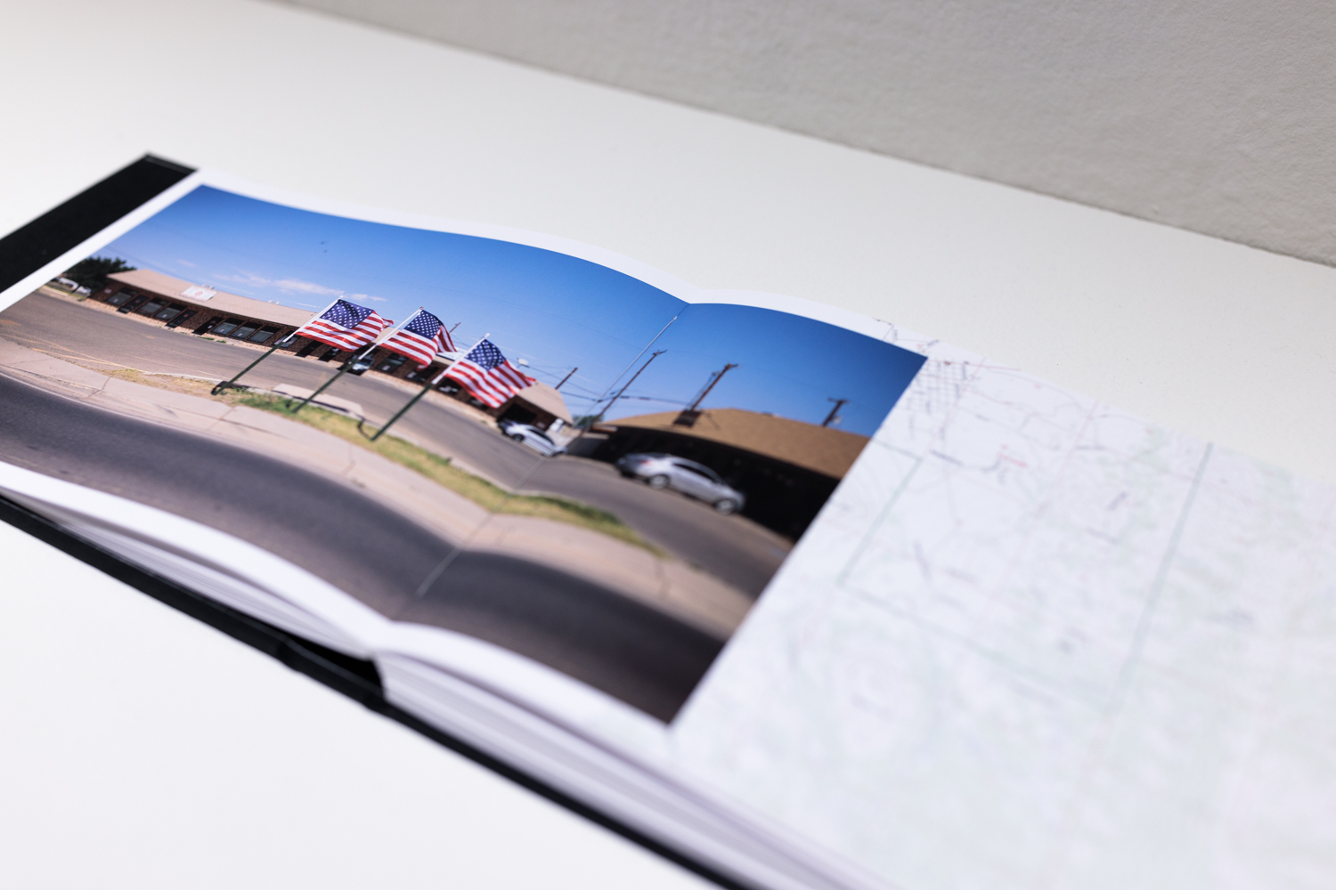 CT: Sure! I love photo books (as I think many photographers do these days), and I particularly feel that with the somewhat narrative basis for my work, the book format makes a lot of sense. With that said, the book format of Cruise Control doesn’t follow a linear or chronological narrative, but since it is largely rooted in a single experience and journey, the narrative bent of the book format still seems to make the most sense for the work. I am also always drawn to layering in my work – compositional layers within images, layering images on top of one another (seen in the installation format of the work or my past work “Vast and Solitary Lands”) – and the book format allows me to bring this into a new dimension. In this book I incorporate printed vellum inserts in the sequence which allow a sense of transparency and layering that is not usually possible with opaque pages. In addition, I view the interaction between pages in spreads, and between spreads throughout the book as an additional sort of layering of images, compositions, and meaning.