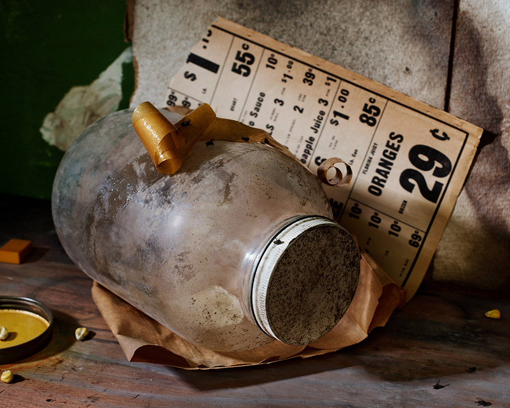 Bottles, cans, and jars of perishable stuff – cherries, chicken gizzards, meat sauces. Some of the cans were bulging, some of the jars were leaking.