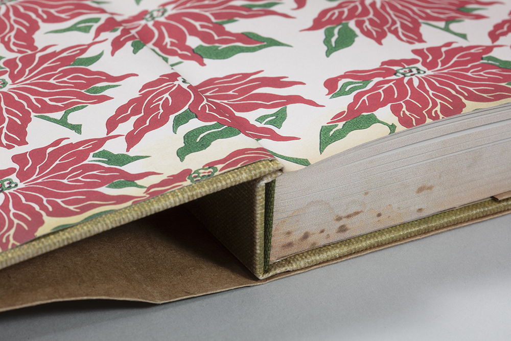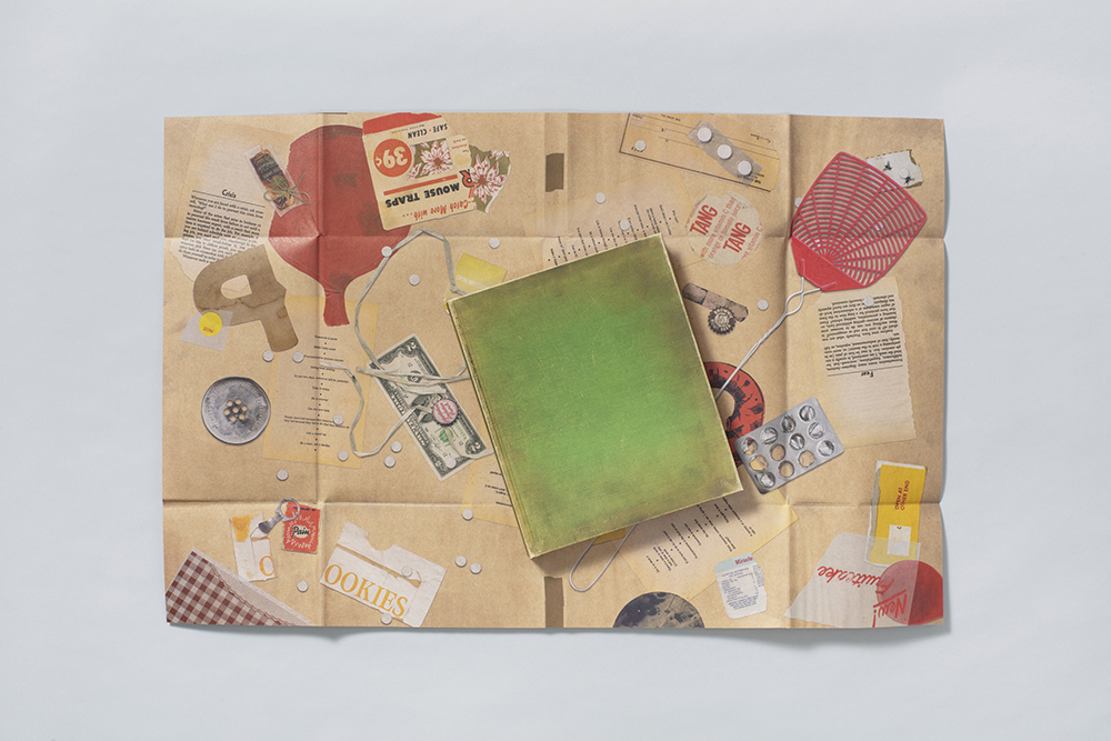 Can you elaborate on the book’s physical design, such as the aged green cloth cover and brown paper jacket resembling a grocery bag in addition to the intentional foxing of the pages and innumerable other intricate details. I assume your intention was to create an artistic physical object.