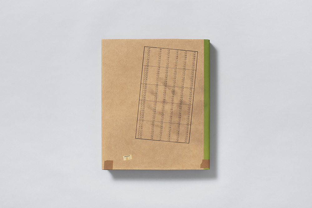 I wanted the book to look and feel like an object that could have come from Gong Co. It had to be green, similar to the color of one of the walls in the store, symbolic of health and wealth among other things. I wanted it to be simple and utilitarian in feel, like a book in a high-use environment such as a library, workplace or shop. I imagined the way it would have been handled and touched over time and how it might bear the traces of that.