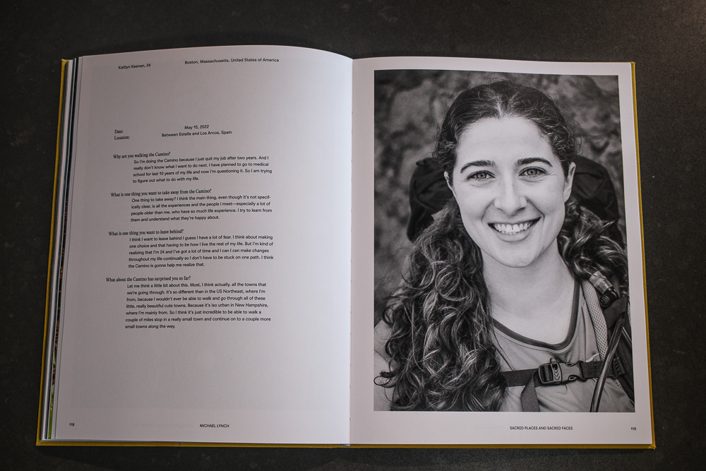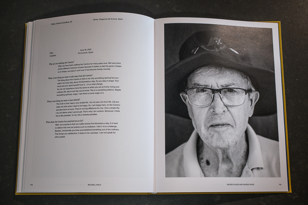 Therefore, the book Sacred Places and Sacred Faces is presented in two parts. Part One depicts my journey in 74 photographs. Part Two focuses on the 43 pilgrim portraits and interviews. As a result, I feel Sacred Places and Sacred Faces is a much stronger body of work. The paired images are usually a pair representing the sacredness of every day life in juxtaposition with a sacred place. There is conversation going on between the images whether that is motherly love, similarities of composition, or commonalities you interpret on your own. I am hopeful this conversation along with the single images convey my transformational and often cathartic experiences along this fantastic journey which has changed me. I also hope you find delight and gain insights regarding why the 43 subjects from 14 countries were walking the Camino. I also hope the work changes you.