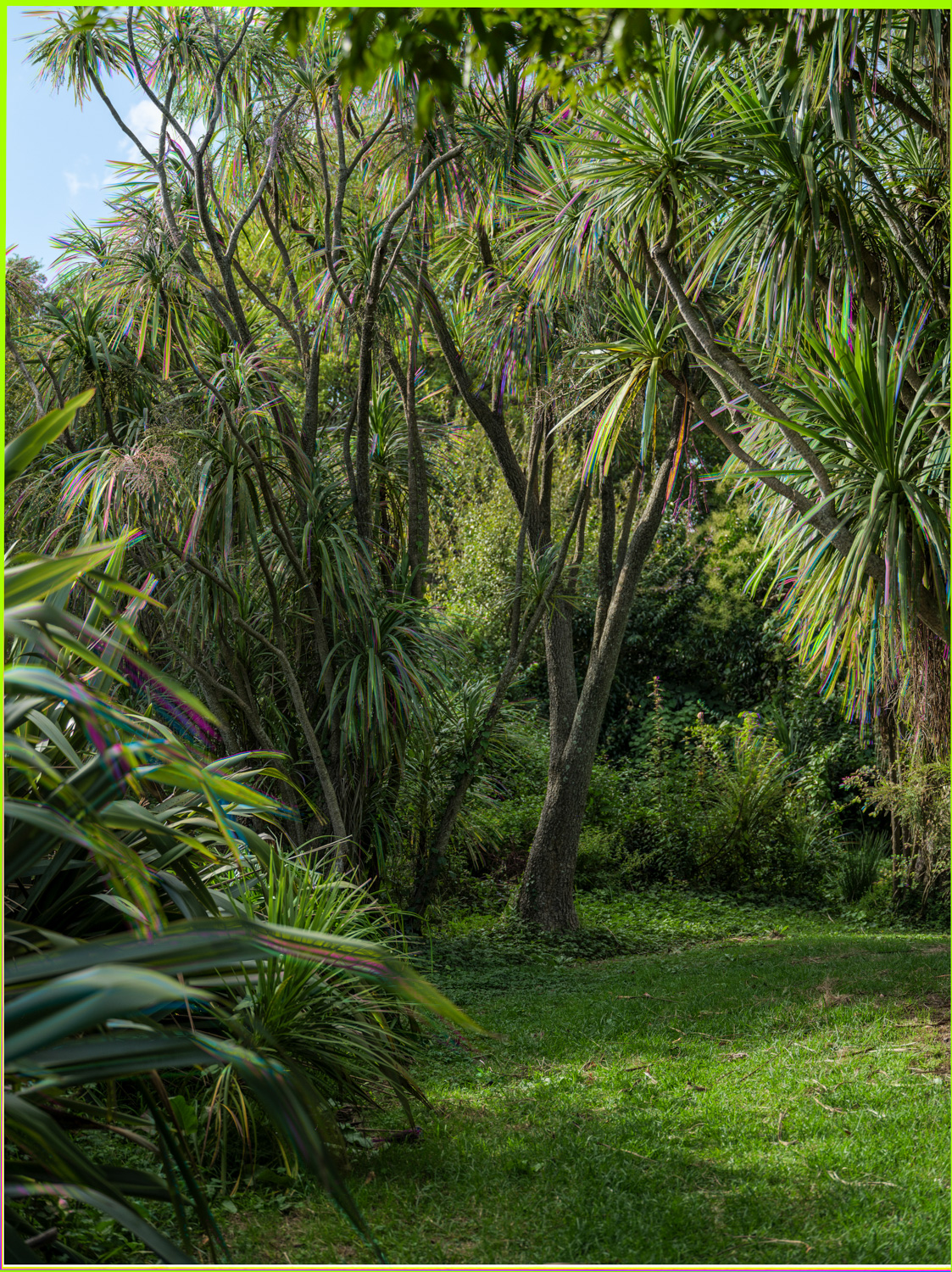 For an example of an overlay, my picture Ellerslie, Elderslie, Ellerslie shimmers with layers of time that are represented by differently colored elements, and these shimmers allude to the shifts that have occurred in that place, or the multiple meanings that are embedded within the land. That picture depicts a park in a part of Auckland called Ellerslie. Ellerslie was originally going to be named Elderslie after a place in Scotland, but thanks to a clerical error, the name was changed to Ellerslie. Adding to the layers, the image features a stand of native tī kōuka cabbage trees alongside the typical british lawn. A modern Aotearoa New Zealand scene that is a mix of old and new, native and introduced, intention and accident.