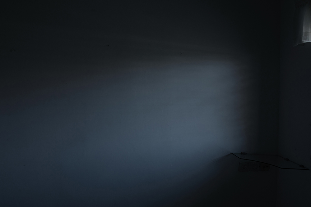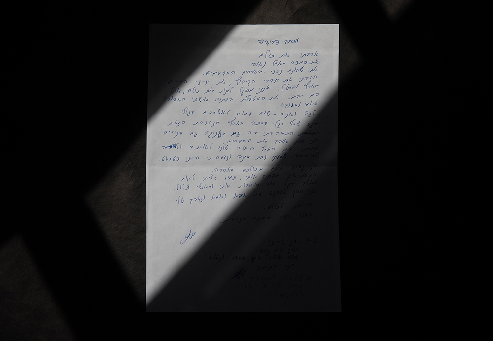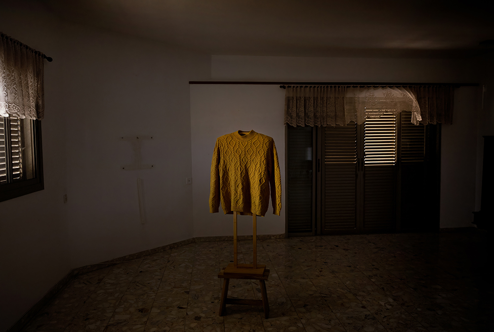 ©Oded Wagenstein, Shemuel Hazon’s sweater placed on a rack in the center of his empty apartment. At the age of 86, Shmuel, who lost his son in a terror attack, exited the window visible at the far right of the picture and jumped to his death from the seventh floor. March 2023. Petah Tikva, Israel.